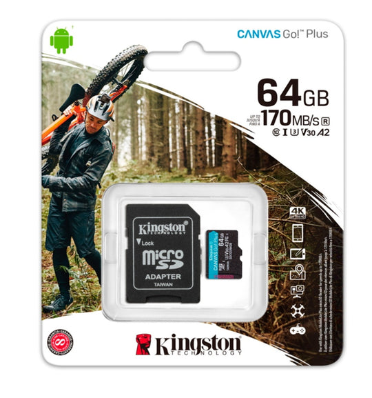 MEMORIA FLASH MICROSDXC KINGSTON CANVAS GO! PLUS, 64GB CON ADAPTADOR SD